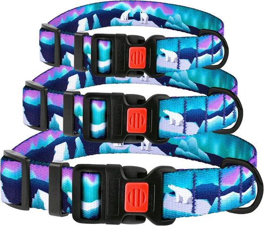 Print Dog Collar Nylon Pattern Adjustable Nature Pet Collars for Dogs Small Medium Large Puppy (Northern Lights, Neck Fit 10"-13")