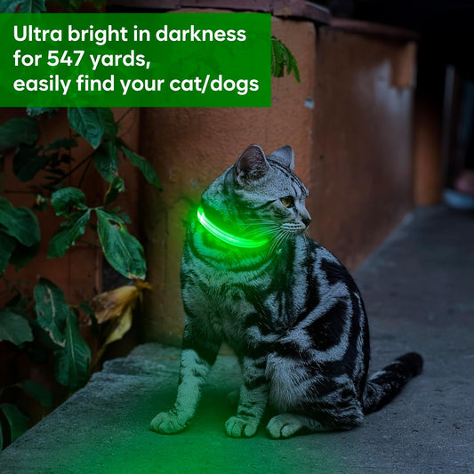 Light up Dog Collar Rechargeable - Reflective LED Pet Collar for Puppies & Cats, Glowing in the Dark Dog Lights for Night Walking (XS, Green)