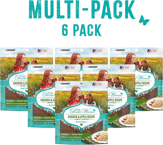 Natural Jerky Grain Free Dog Treats, Chicken & Apple Recipe Jerky Strips - 5 Ounce (Pack of 6)